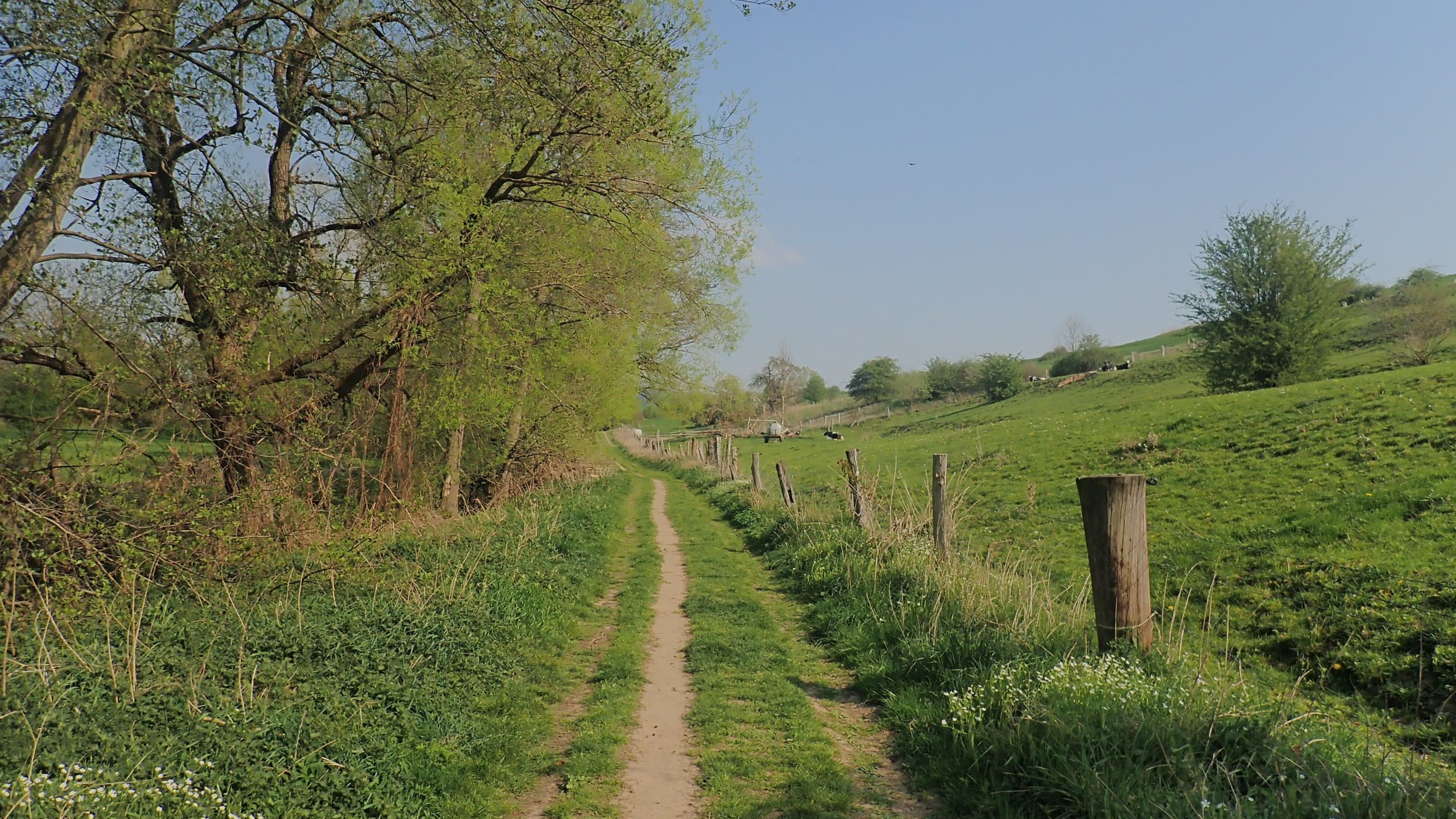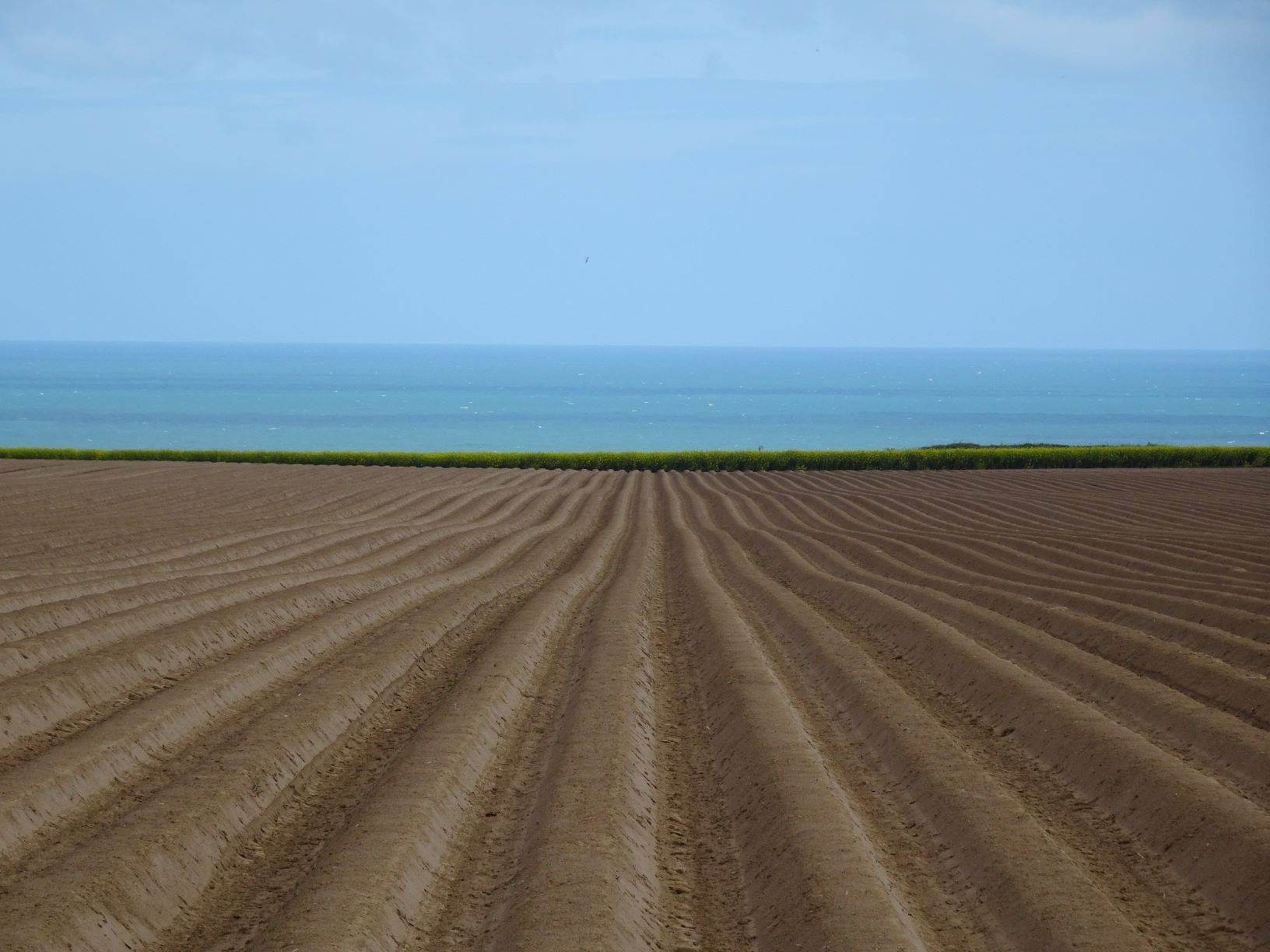 De Berlin, Audrey est rentrée à Toulouse (nous nous retrouverons en Colombie dans un peu plus de 3 mois pour la suite du chemin) et j’ai débuté, en ours un peu solitaire, ma longue route vers l’Ouest sans avion. La première étape a été de rallier Le Havre en train à travers les campagnes allemande et française, finalement pas si différentes. Les paysages se dévoilent et disparaissent au gré des reliefs vallonnés que le train tranche en ligne droite, trop pressé pour épouser les courbes naturelles. Les champs de blé alternent dans de longues ondulations avec les prairies mouchetées de pissenlits où paissent des vaches aux robes changeantes. Quelques parcelles de colza jaune intense ponctuent le vert gras du jeune blé. Des bois de chênes, de hêtres et de conifères rompent cette monotonie et des langues de saules et peupliers trahissent le tracé des cours d’eau invisibles à l’œil. Çà et là un étang, un village et un petit cimetière.