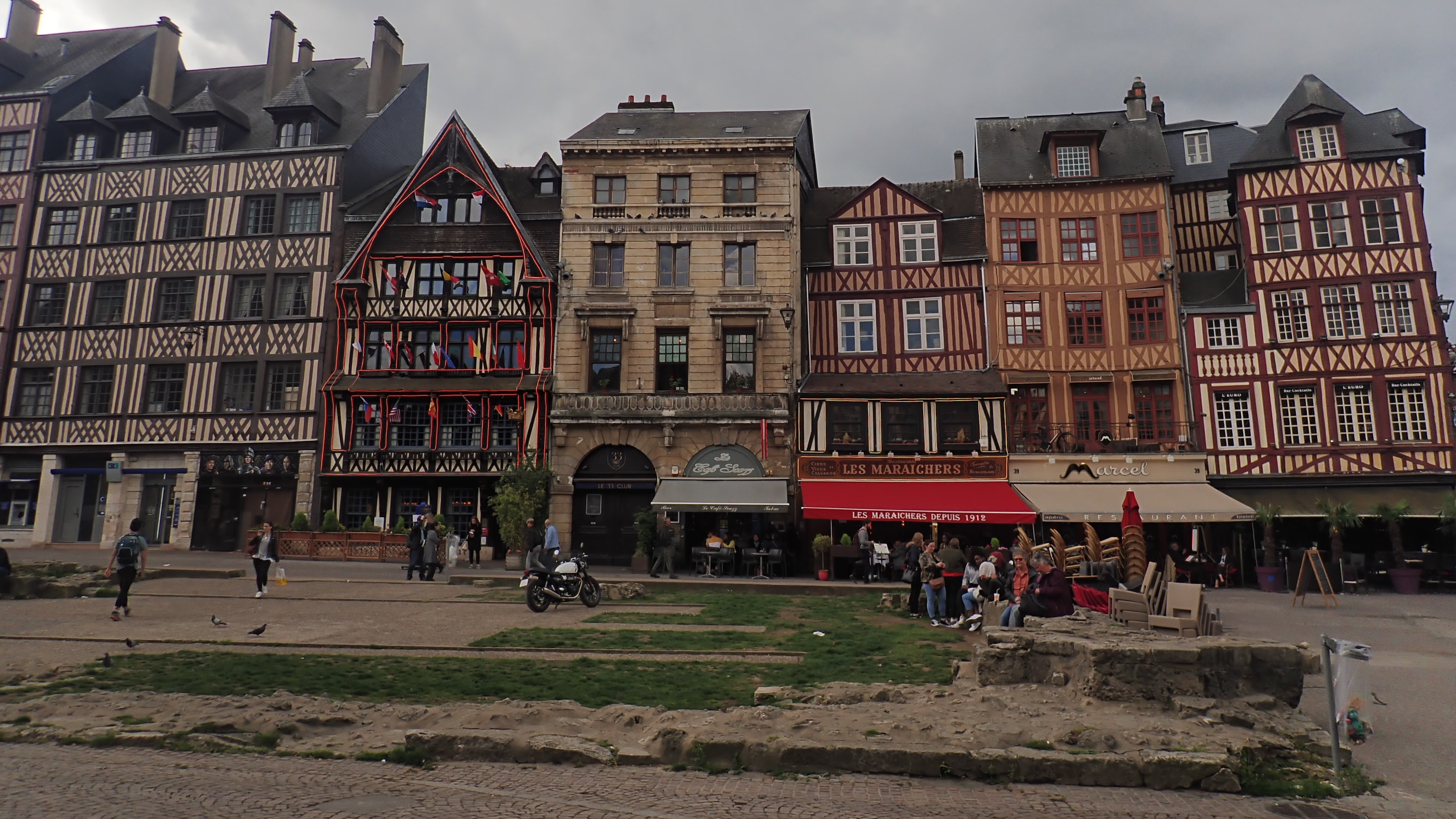 J’ai entrecoupé mon chemin de visites à quelques amis, en profitant pour découvrir ou retrouver les charmes de Göttingen et sa campagne (bien aimés de Barbara et des Frères Grimm), Strasbourg (Petite France et flammekueche), Paris (des perruches à collier au Père Lachaise!), Rouen (Jeanne d’Arc et colombages), Caen (abbayes, château et mémorial) et enfin Le Havre, dont on m’avait dressé un tableau si laid que j’ai été agréablement surpris, notamment par sa plage de galets et l’étonnante église St-Joseph aux allures de vaisseau extraterrestre.