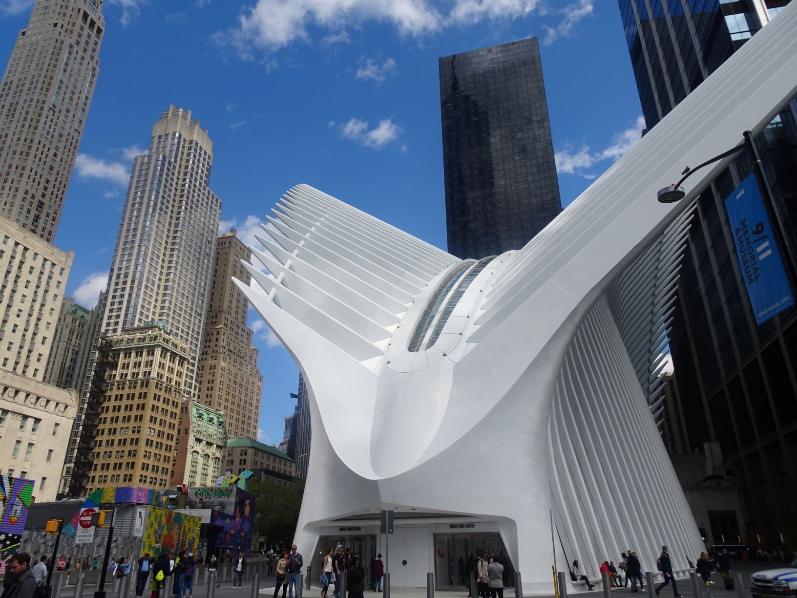 Cityhall, Wall street, Ground Zero : les noms des victimes du 11 septembre constellent les marges de deux grands bassins mémoriels construits à l’emplacement des tours jumelles, leur remplaçante trônant de l’autre côté de la rue. Je suis fasciné, pour le meilleur et pour le pire, par l’Oculus, nouvelle gare futuriste et temple de la consommation qui étend ses ailes au milieu du World Trade Center. Tout est blanc, lumineux, immaculé, avec une douce musique zen et vendeuses en tailleur impeccable. Ne manquent que les annonces robotiques doucereuses et aliénantes pour se croire dans un film d’anticipation dystopique : Bienvenue à Gattaca, Equilibrium ou autre The island.