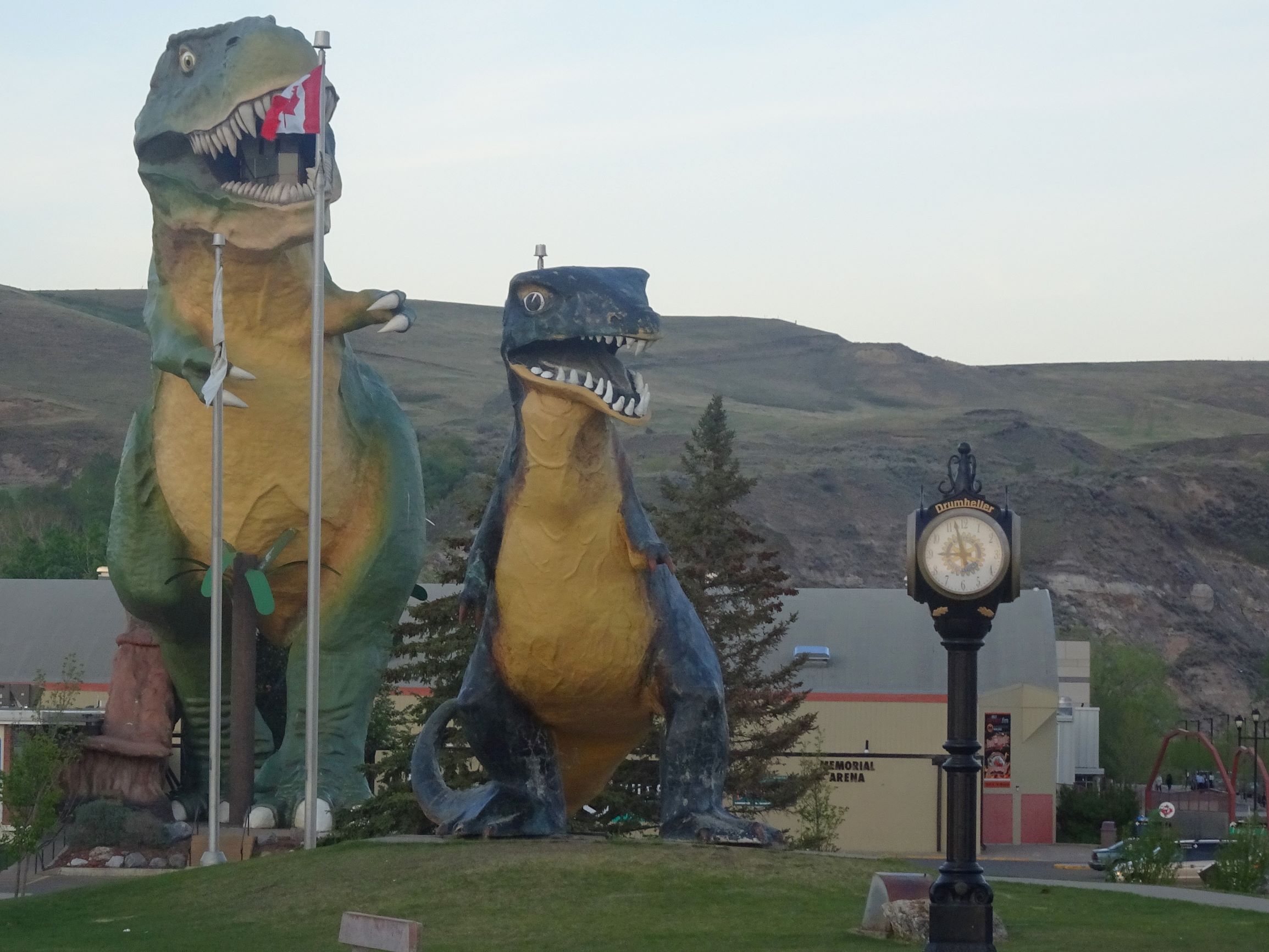 Ces formations sont aussi de riches gisements à ciel ouvert de fossiles, notamment de dinosaures. La bourgade poussiéreuse et un peu “redneck” de Drumheller capitalise avec un goût discutable mais franchement amusant sur ce patrimoine paléontologique et on y croise à presque chaque coin de rue des dinosaures en papier mâché parfois plus grands que nature et souvent costumés. Le samedi soir, le tout Drumheller de 18 à 78 ans se retrouve au Yavis Family Restaurant pour déguster un bon gros steak en regardant le baseball, siffler des carafes de bière, jouer au billard et au bandit-manchot et surtout pour un karaoké de cowboys aux accents très country-folk-rock. L’occasion de nous faire remarquer en entonnant un audacieux Foule sentimentale avant de revenir dans le thème avec Yusuf Islam alias Cat Stevens, Paul Simon ou Johnny Cash (forever !) et de refaire le monde avec de sympathiques locaux. Aussi sympathiques dans l’accueil qu’ils nous ont réservé qu’antipathiques dans leur discours… Difficile de dire si les opinions alcoolisées recueillies ce soir-là étaient représentatives de la population albertaine mais elles nous ont donné un triste aperçu des frustrations amères et xénophobes qui peuvent se cristalliser dans cette contrée reculée d’une province au passé faste et à l’avenir incertain. Justin Trudeau et, plus largement, les provinces de l’Est (Ontario, Québec…) et de l’Ouest (Colombie-Britannique) en ont pris pour leur grade, accusés notamment de spolier injustement et sans contre-partie les richesses de l’Alberta. Quant aux provinces et territoires du Nord, je cite : “On sait pas trop à quoi ils servent à part qu’il fait toujours nuit”. Les Premières Nations (ici on ne parle pas d’Indiens ou d’Amérindiens) ont pris quelques salves au passage, eux qui ne “s’adaptent pas à la culture du Canada et à ses racines chrétiennes”… celle-là fallait oser !