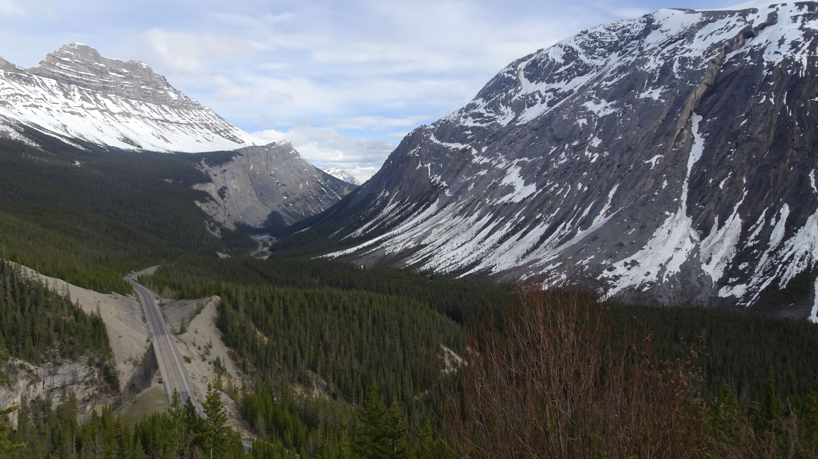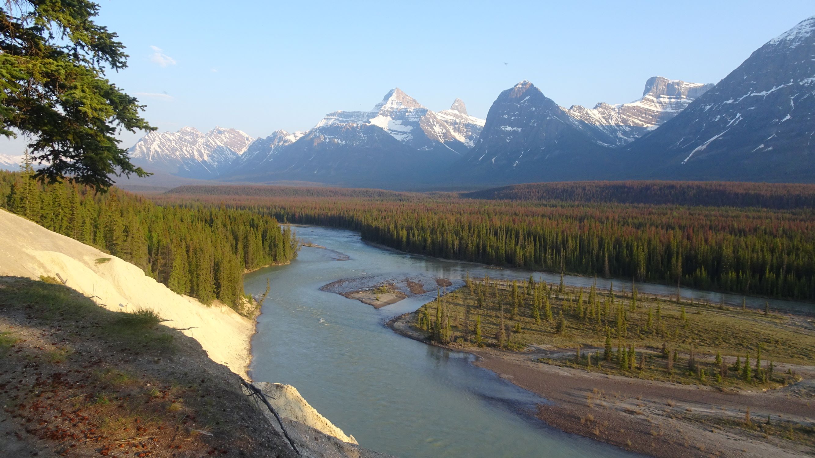 C’est à Toronto que mon amie Cécile m’a rejoint pour deux semaines de virée transcanadienne. Celle-ci a débuté par trois jours complets de train durant lesquels nous avons traversé les forêts et lacs d’Ontario puis les vastes plaines cultivées du Manitoba et du Saskatchewan avant de rejoindre l’ouest Albertain et les Rocheuses canadiennes, longue chaîne montagneuse qui porte bien son nom. Pics acérés, palissades vertigineuses et remparts imprenables se dressent de part et d’autre de l’Icefields Parkway, plus de 200 km de route “panoramique” à travers deux parcs nationaux. Des lacs turquoise ou parfois gelés, des rivières qui serpentent dans de larges vallées glaciaires et des versants montagneux tapissés de pins. Malheureusement, des pans entiers de forêt sont morts sur pied, infestés par le Dendroctone du pin ponderosa, coléoptère qui a sa place dans le cycle forestier naturel mais qui connaît depuis quelques années une expansion fulgurante, attribuée au changement climatique (les insectes survivent davantage aux hivers moins rigoureux) et à une lutte trop intense contre les incendies (la préservation de grands peuplements matures favorise sa prolifération).