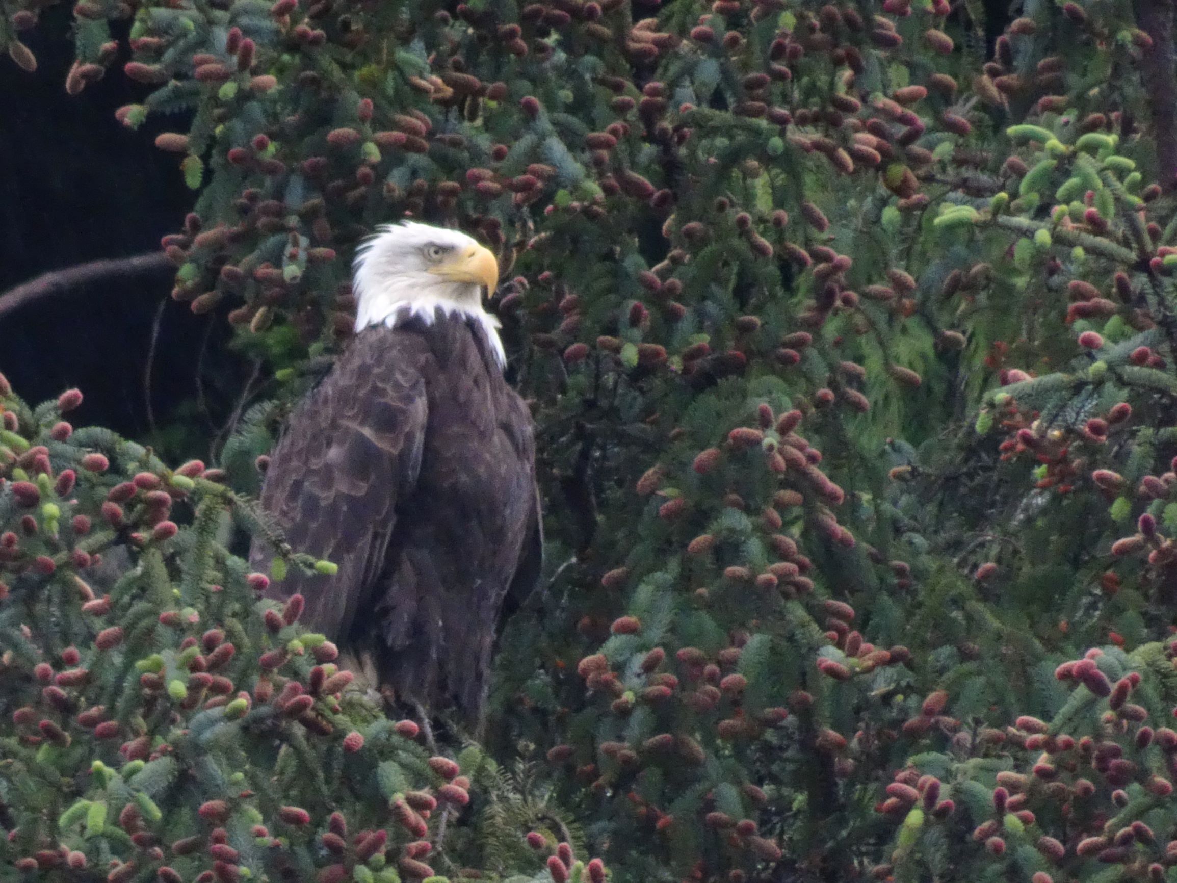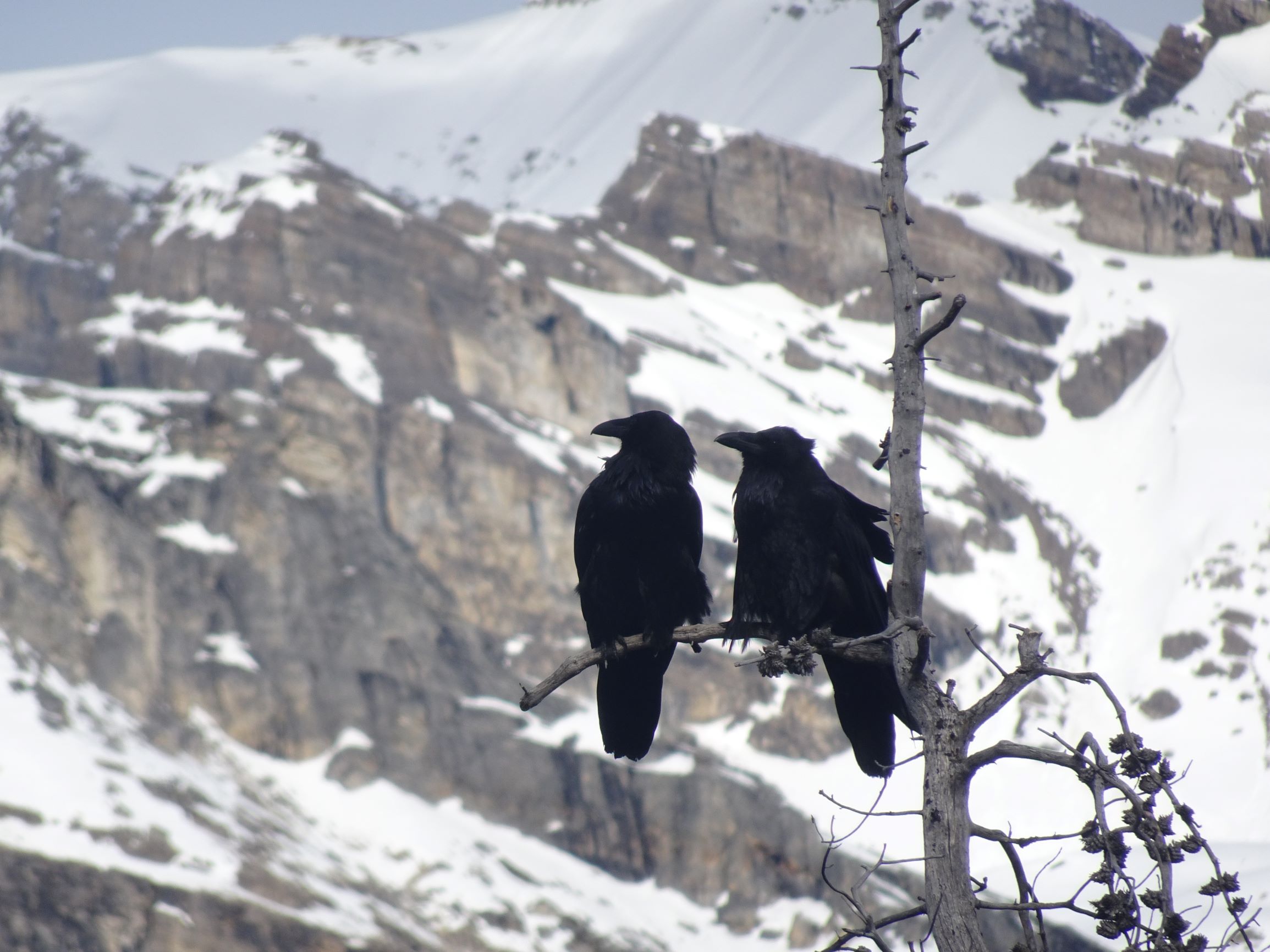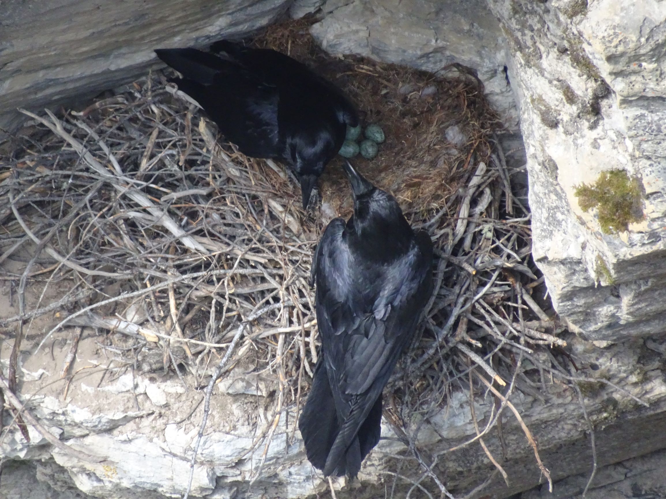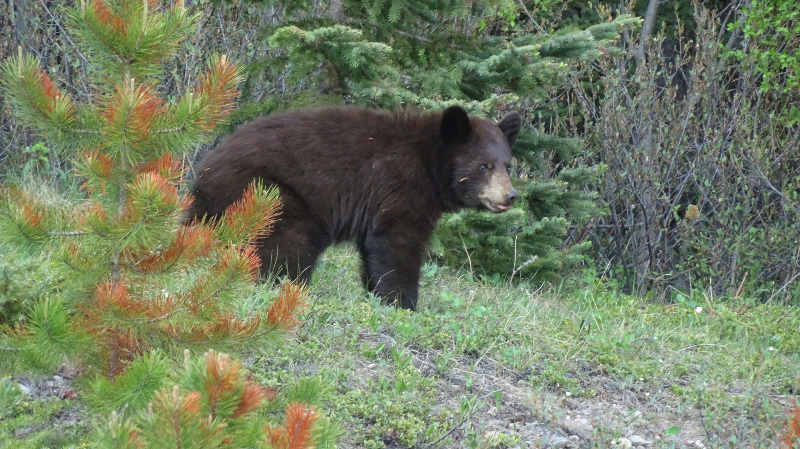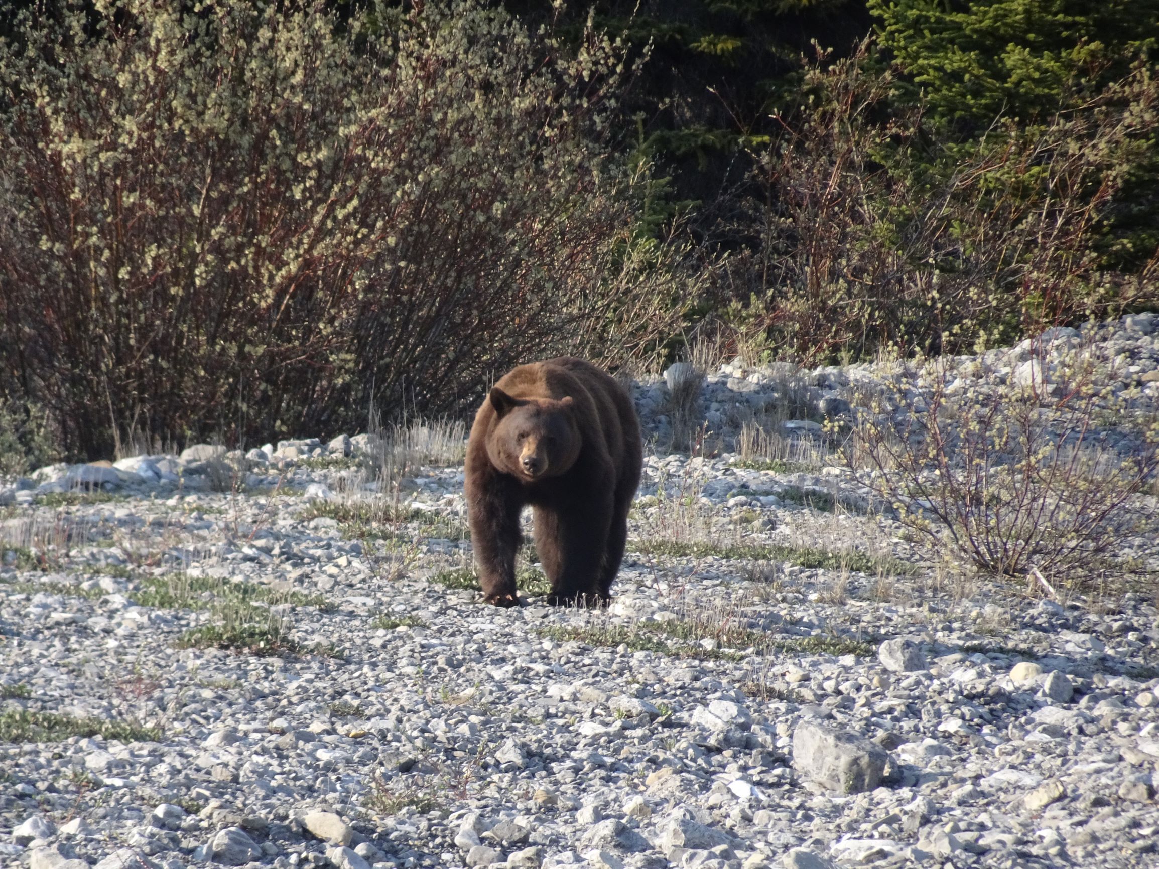 Dans ces paysages grandioses évolue une faune sauvage étonnamment accessible. En bord de route, des mouflons se reposent, des cervidés broutent les arbustes (wapitis, orignaux et autres cerfs) et des ours noirs se régalent des pissenlits printaniers, parfois en famille. Sur les parois encaissées d’une gorge, Mme. et M. Grand Corbeau se relaient pour couver leurs œufs bleus et M. et Mme. Pygargue font de même pour nourrir leurs jeunes au sommet d’un grand pin. Et tout ça sur une même journée ! Cette proximité de la faune crée même des embouteillages intempestifs, délétères à la fois pour la sécurité routière et la tranquillité des animaux.