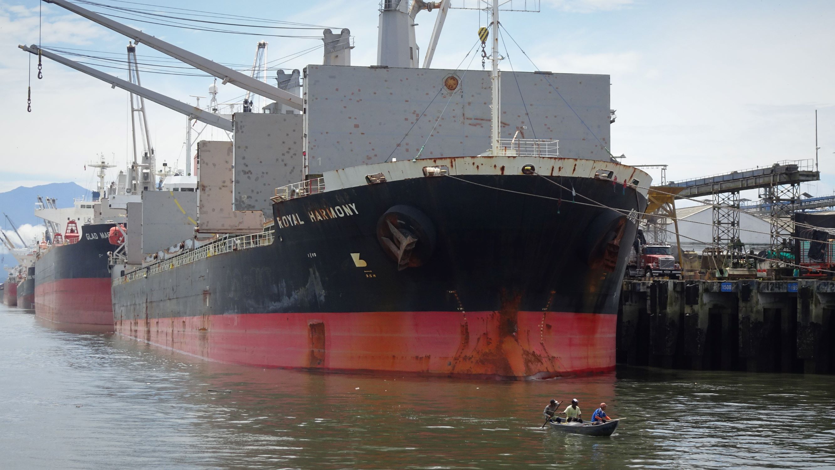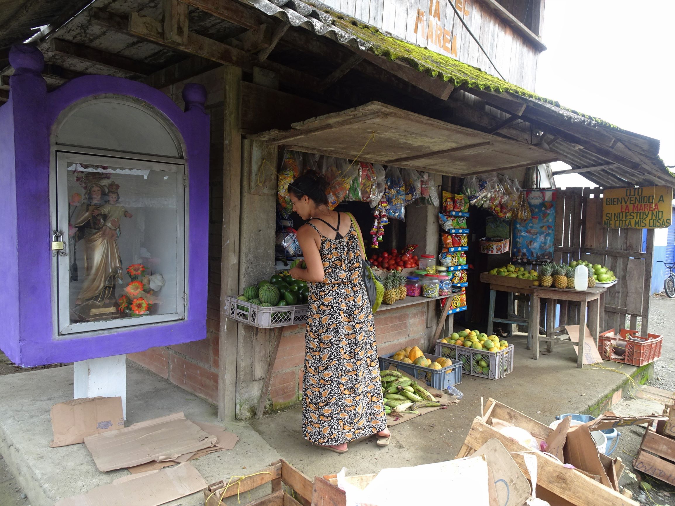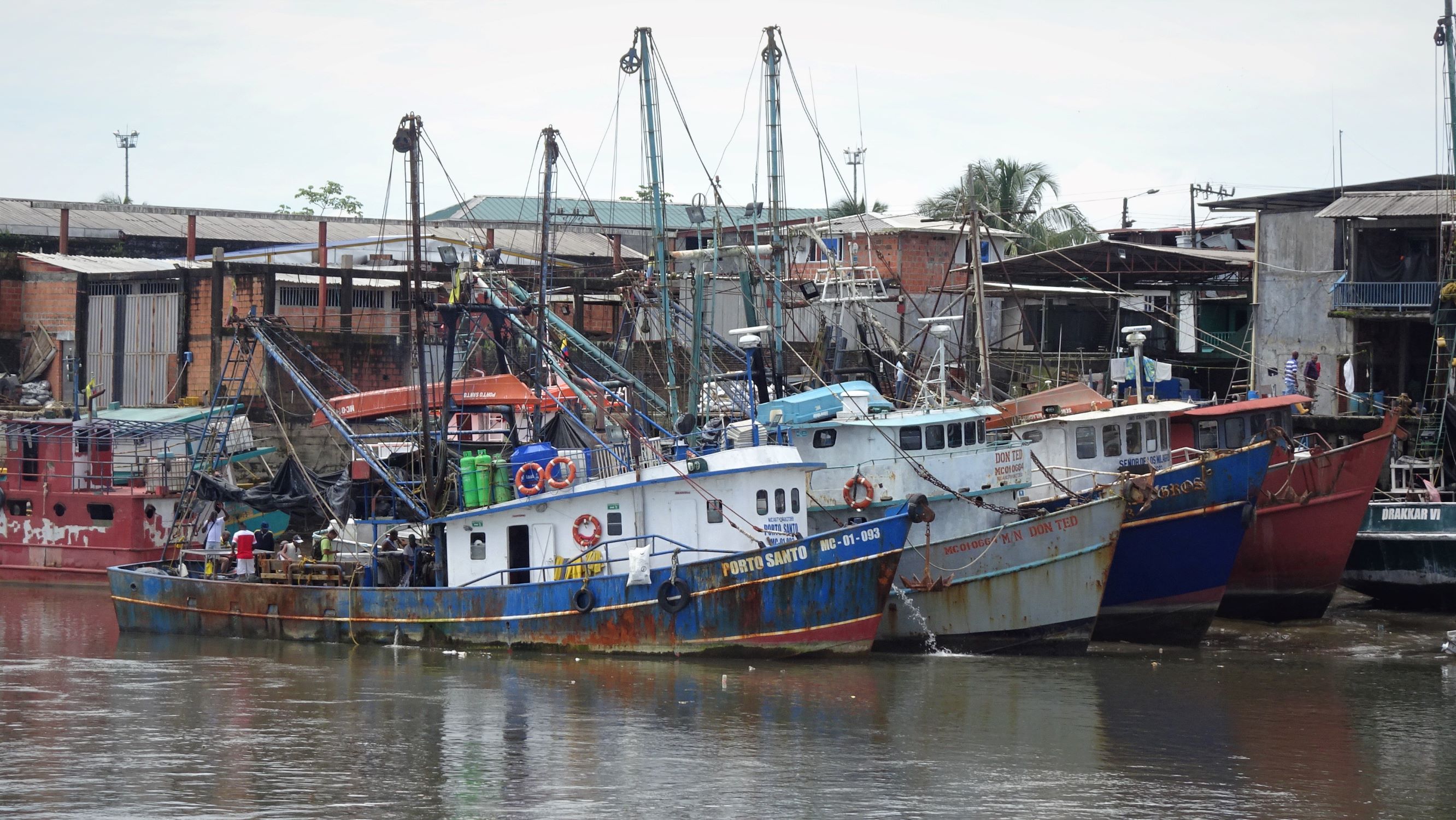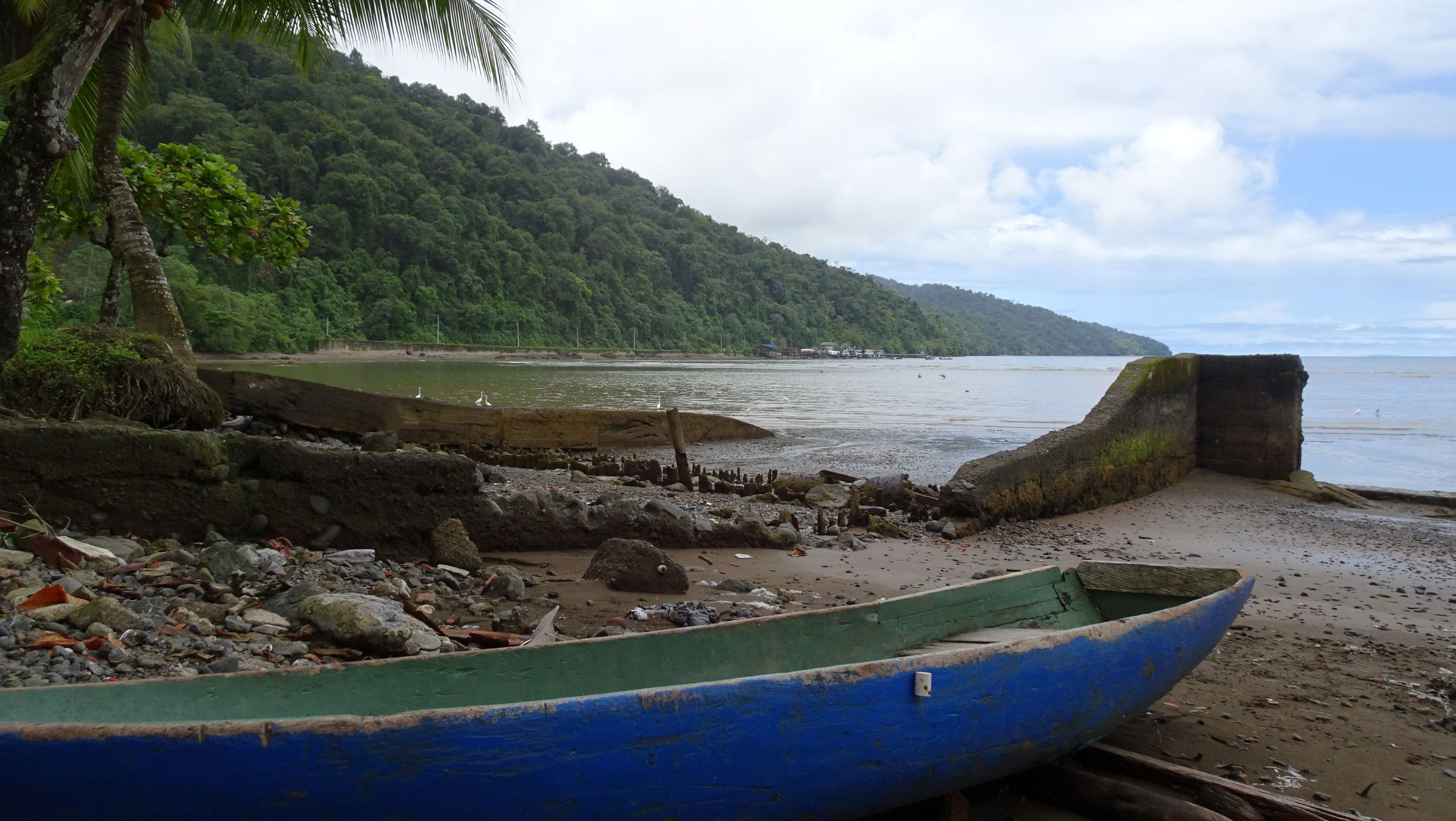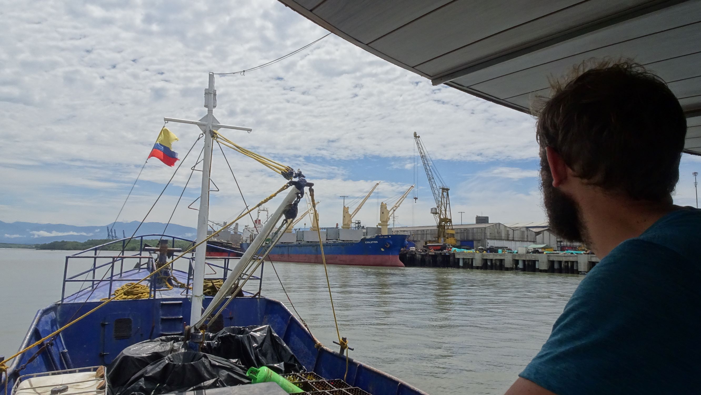 A quai, c’est le branle-bas de combat, tout le monde est sur le pied de guerre car il faut charger le bateau rapidement pour qu’il parte avant la fin de la marée montante. A bord, outre les poissons (surtout des petits requins…), notre cargaison est essentiellement constituée de bonbonnes de gaz et bouteilles de bière vides. En sens inverse, les cargos transportent vers le Chocó, entres autres, marchandises, tuk-tuk, scooters et caisses de bières (pleines cette fois).