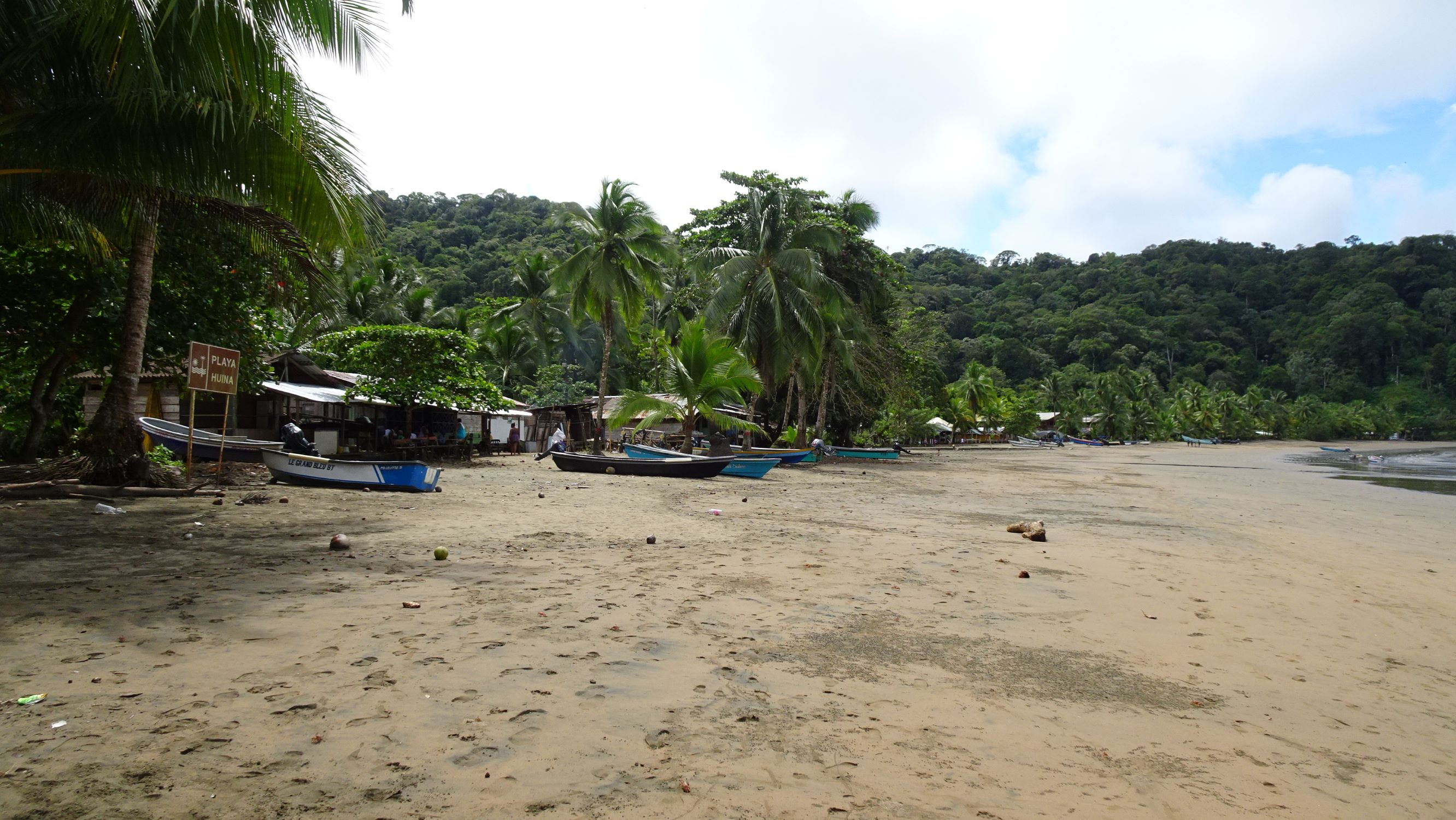 Après une nouvelle recherche laborieuse d’infos pour repartir du Chocó et plusieurs fausses pistes, nous embarquons pour le village de Nuquí sur une lancha rapida (bateau tape-cul +++). C’est parti pour 1 heure de rencontres fracassantes entre nos fessiers et le banc en bois avec tassement de quelques vertèbres au passage. On a les pétoches pour notre coccyx et pour l’ordi qui saute avec le reste du chargement. Aïe aïe aïe…