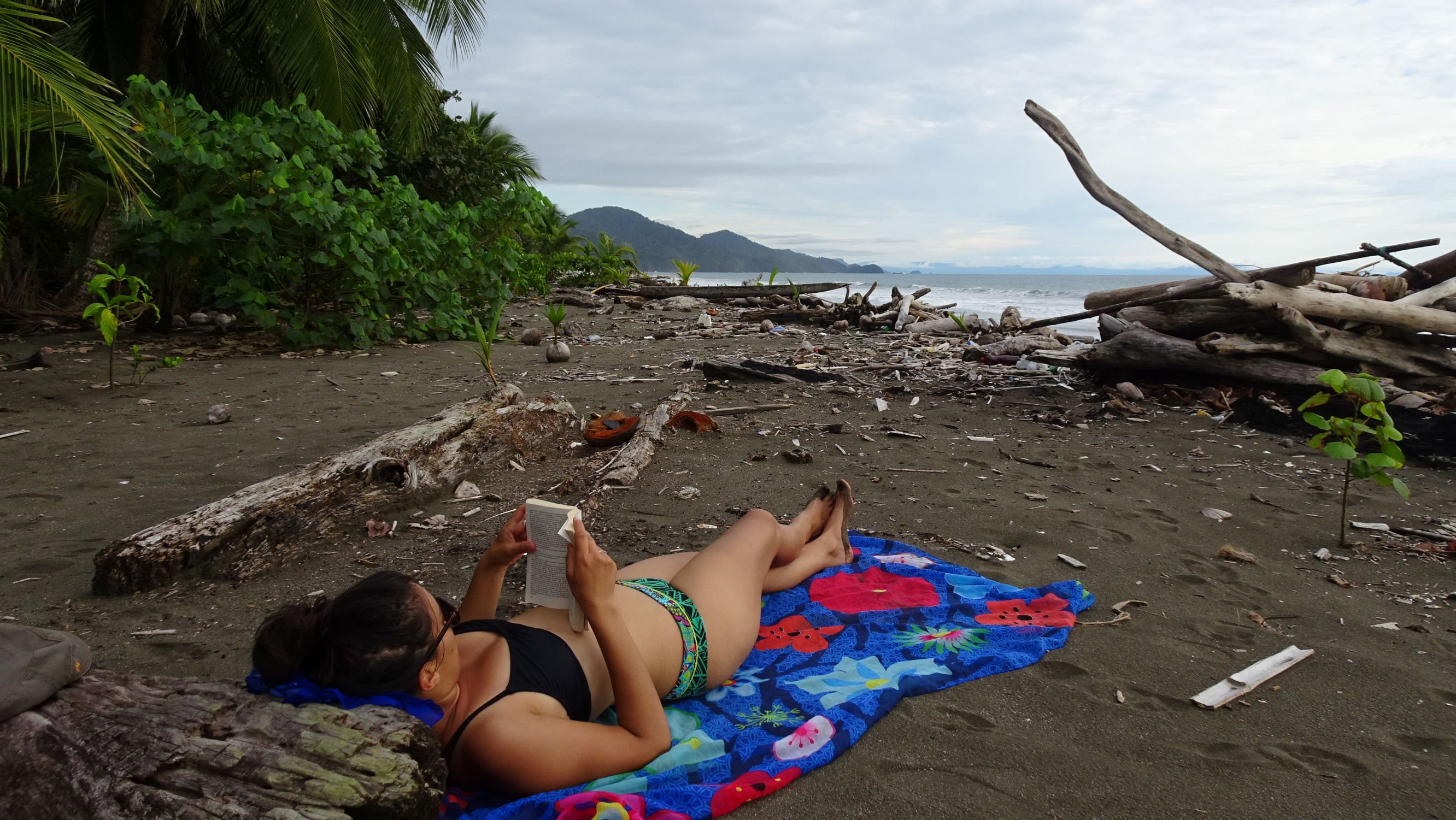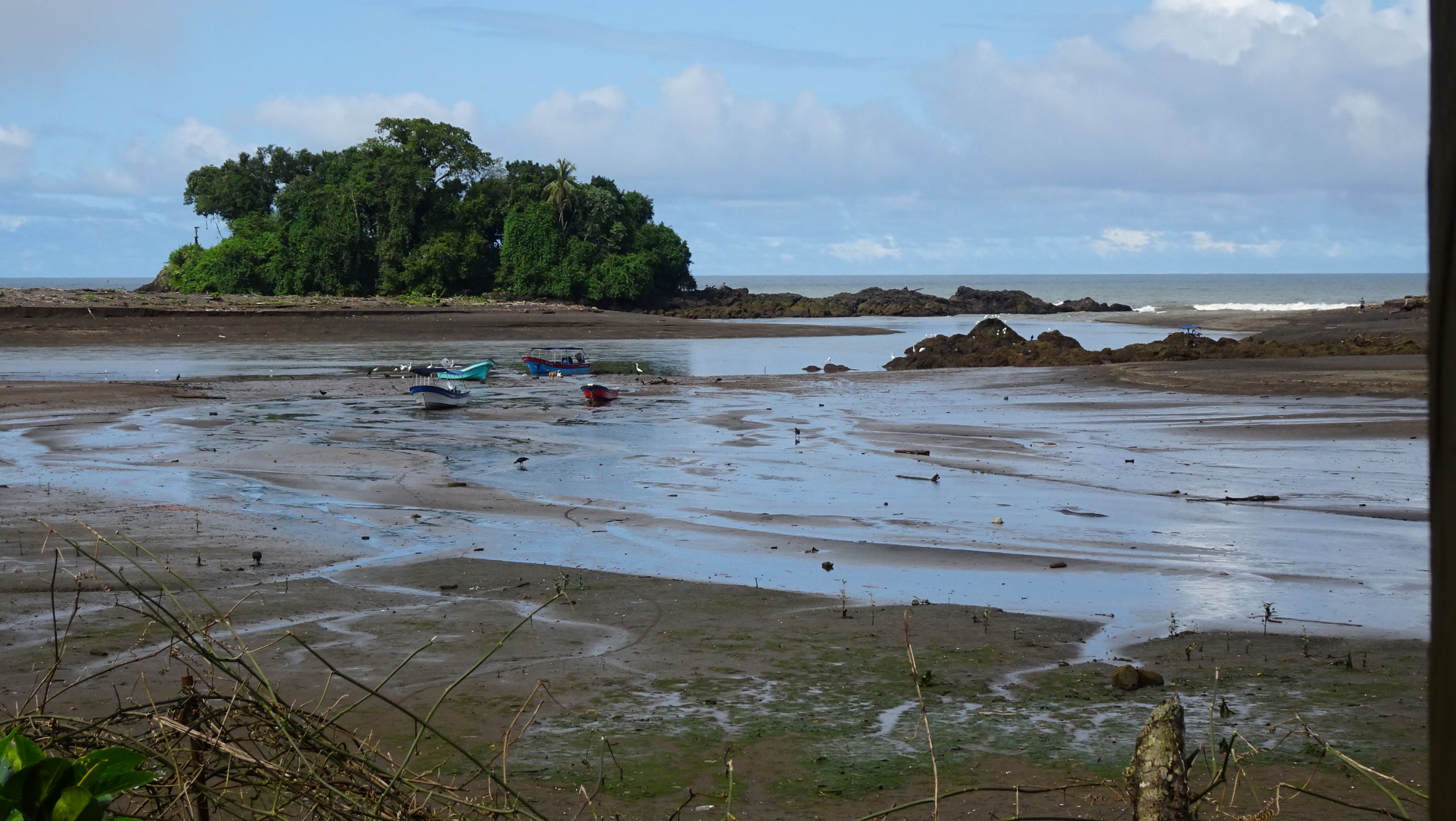 Entre deux lectures et baignades, on traque les crabes sur la plage et on s’amuse comme des gamins à descendre une rivière en bouée, activité typique des touristes colombiens. Nos balades dans le village nous mènent sur la grève à marée basse où limicoles, pélicans, aigrettes et autres échassiers se laissent observer – première rencontre avec le Bihoreau violacé.