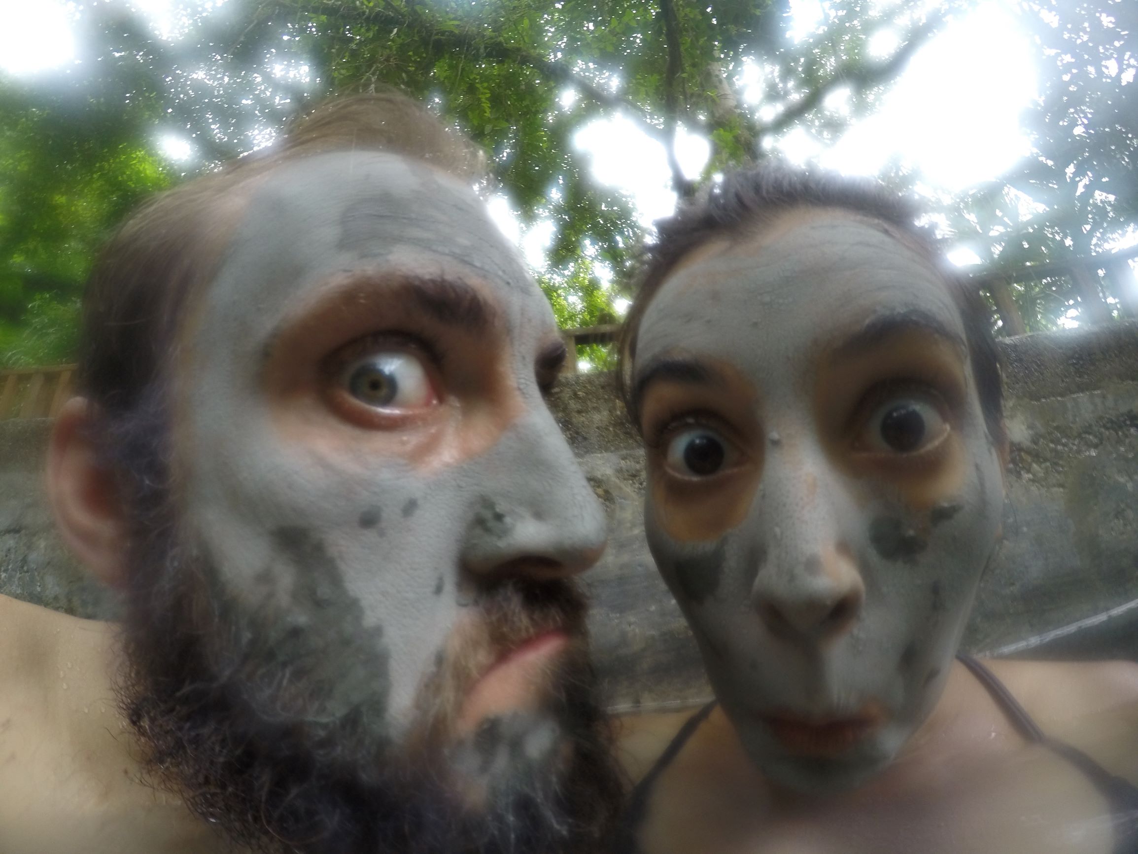On va se remettre de nos émotions avec un petit bain d’eau thermale en bordure de cours d’eau et des masques d’argile made in river.