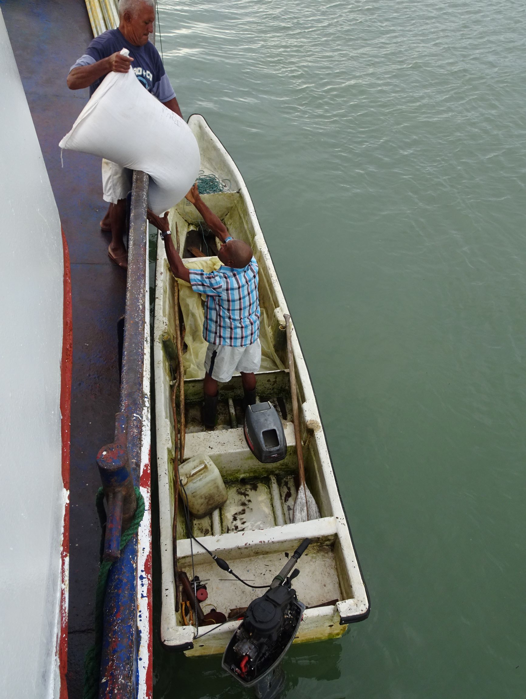 Le bateau livre quelques denrées à de petites localités. A Joví, la petite lancha estampillée « alcaldia municipal » (mairie) vient récupérer des gros sacs de farine et donner ses bouteilles de bière vides.