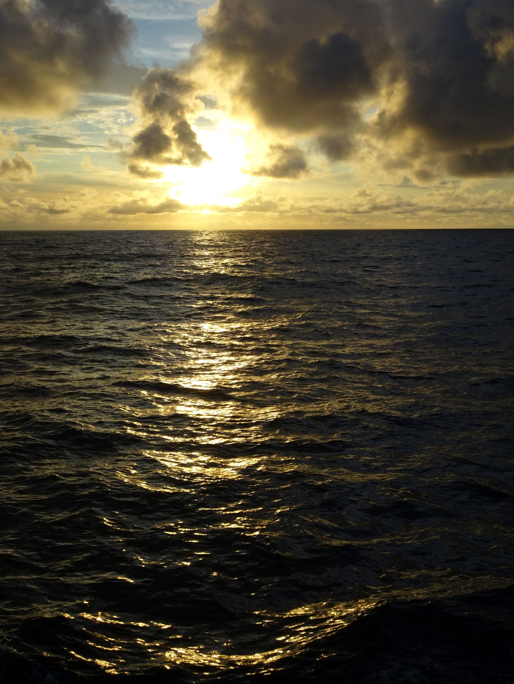 Dans la nuit, l’orage gronde. Notre sommeil est régulièrement interrompu par les éclairs et le roulis, la porte ouverte de la cabine laissant admirer la pluie battante à 45°.