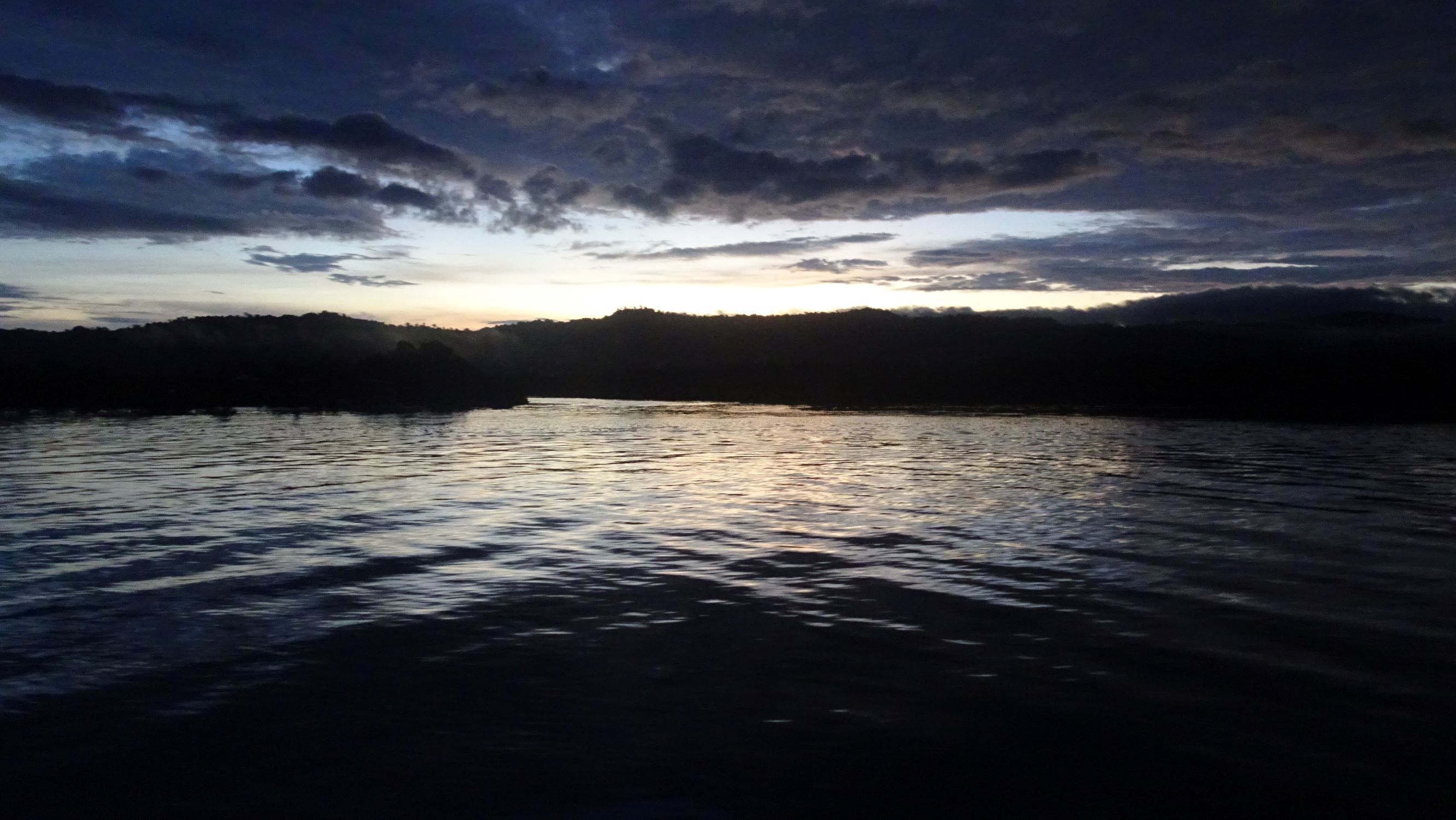 On décolle avec Annie et nos frontales à 4h du mat’. Arrivés à l’embarcadère, stupeur ! Le Salo n’est plus là… ! Consternation, désarroi et affolement, on se demande brièvement si ce Salaud n’est pas parti sans nous, plus tôt que prévu. Mais il est vite repéré, amarré plus loin en train de charger du poisson. Encore faut-il réussir à rallier ce quai… La marée montante inonde en partie les rues et il fait nuit noire. Nous partons avec énergie et espoir à travers la ville qu’on a heureusement bien sillonnée ces derniers jours. Les ruelles obscures sont jonchées de nids-de-poule et de flaques qui surgissent dans le halo de nos frontales. Une flaque plus grande nous oblige à faire demi-tour et à contourner un pâté de maisons. On trotte vigoureusement. Je m’engage dans une ruelle pendant qu’Annie plonge sous un volet métallique à moitié levé d’où sortent lumière et bruit. Demi-tour, la ruelle est bouchée par les eaux. On plonge à notre tour avec Thomas. Ça pue le poisson mais c’est bon signe ! Au bout du couloir, ça s’active dans le grondement d’un groupe électrogène pour charger des caisses de poissons à bord du Salo. Nos sacs sont hissés sur le pont puis c’est à notre tour de grimper. Ouf ça y est, nous sommes à bord !