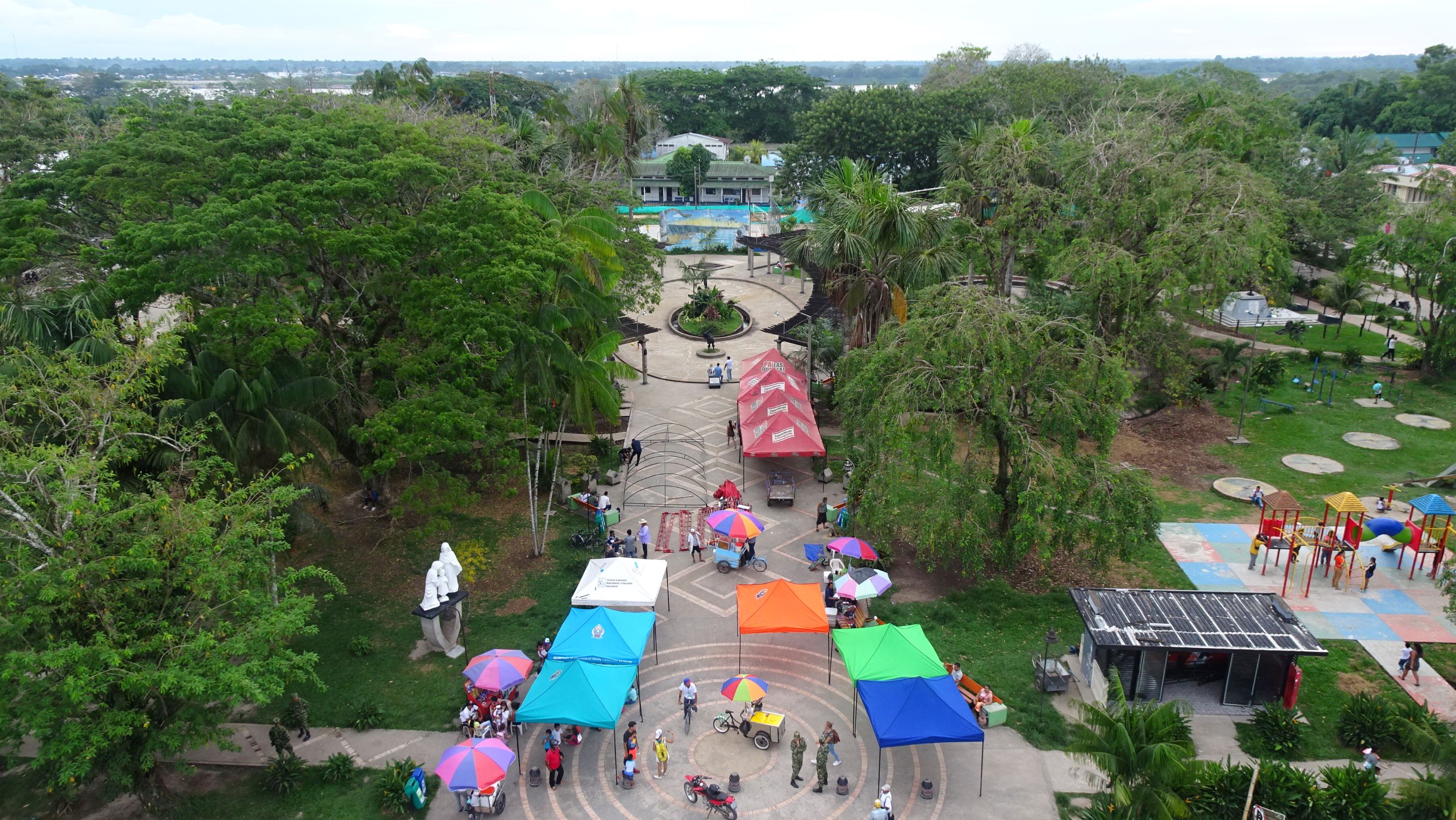 La chaleur y est harassante et les rues poussiéreuses mais Leticia dévoile des charmes amazoniens qu’on ne saurait bouder. Sur le canal latéral à l’Amazone, point de peupliers ni de péniches mais des pirogues en pagaille qui déchargent leur cargaison sur le dos de vaillants porteurs, certains se transformant alors en véritables hommes-bananes. Et chaque soir, aux premières fraîcheurs du crépuscule, on peut admirer depuis le clocher les dizaines de milliers de perruches, semblables à des nuées d’étourneaux, qui voltigent au-dessus des toits et saturent les rues de leurs cris assourdissants avant de s’assoupir dans les arbres de la place.