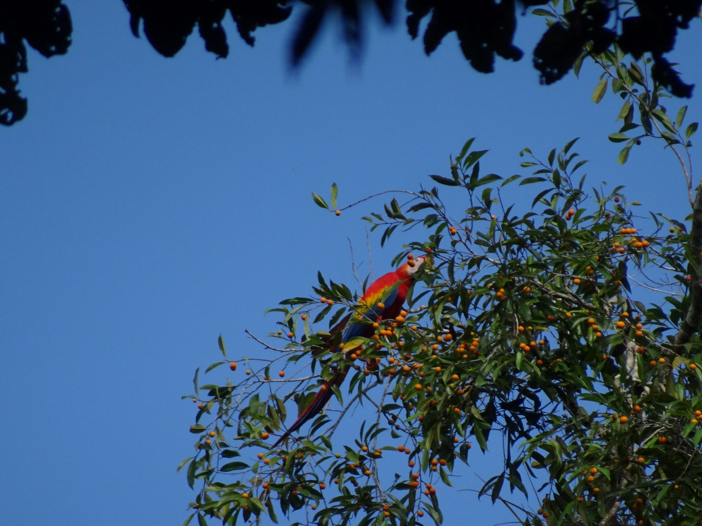 Des groupes de singes font trembler les frondaisons et s’enfuient à notre approche. Plus indifférents à notre présence, deux Aras macao aux couleurs de la Colombie se régalent de fruits orange dans la canopée. Piégé par la dernière décrue, un lamantin végète seul dans un petit chenal à peine en eau ; son salut dépendra des pluies jusqu’à la prochaine crue.