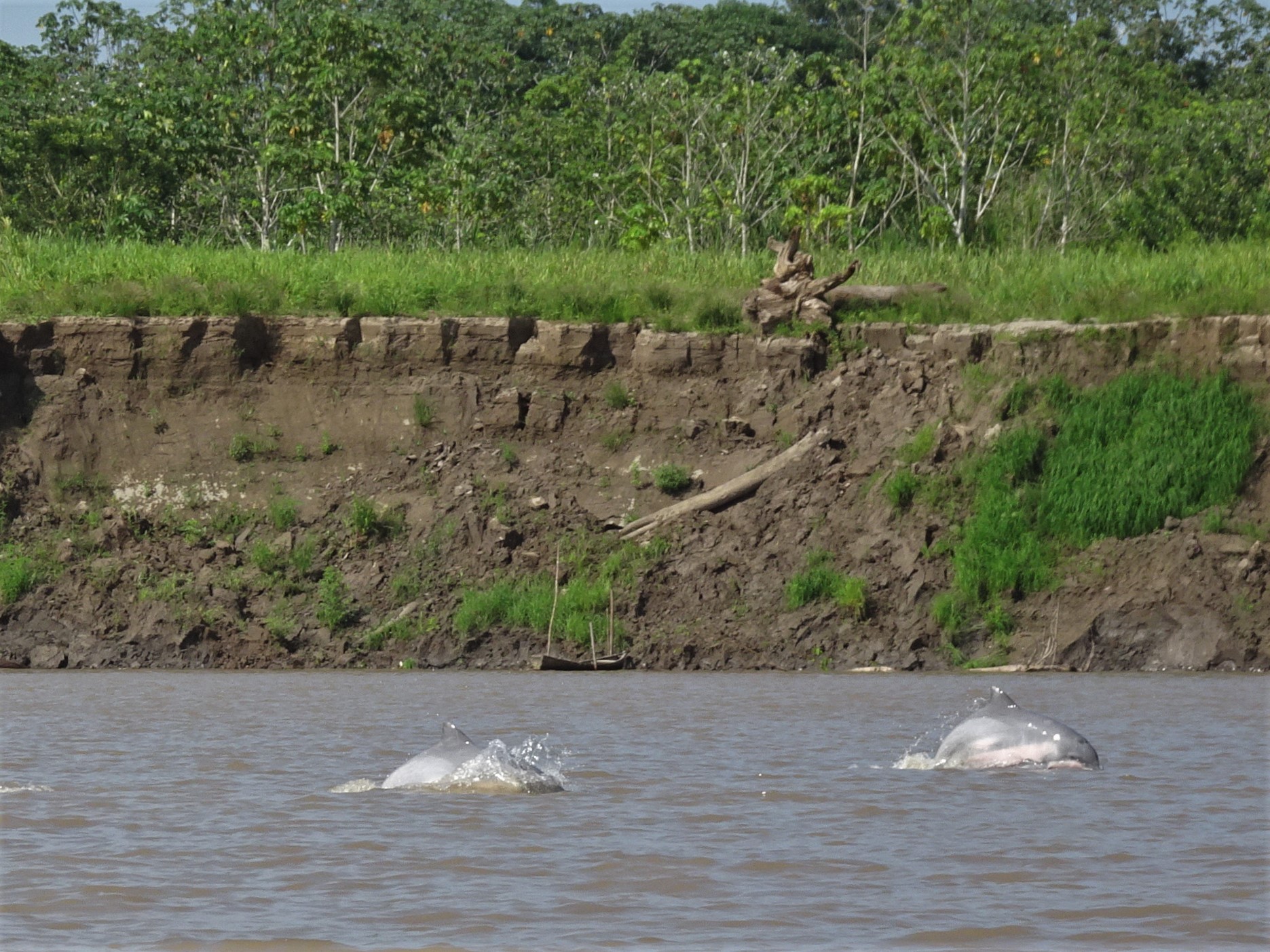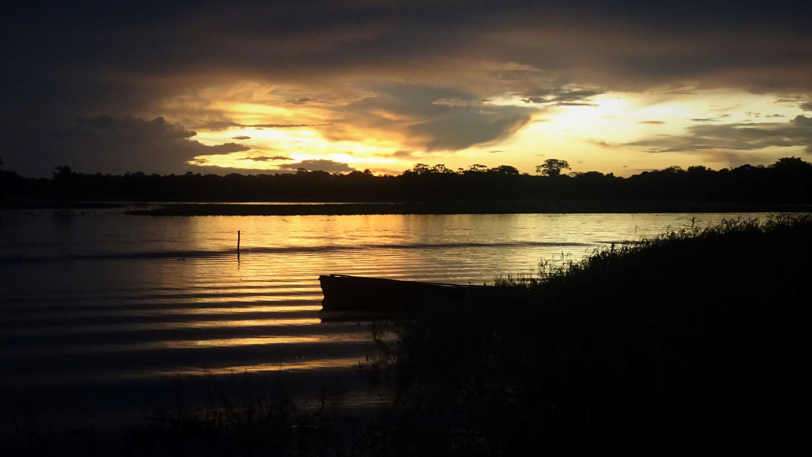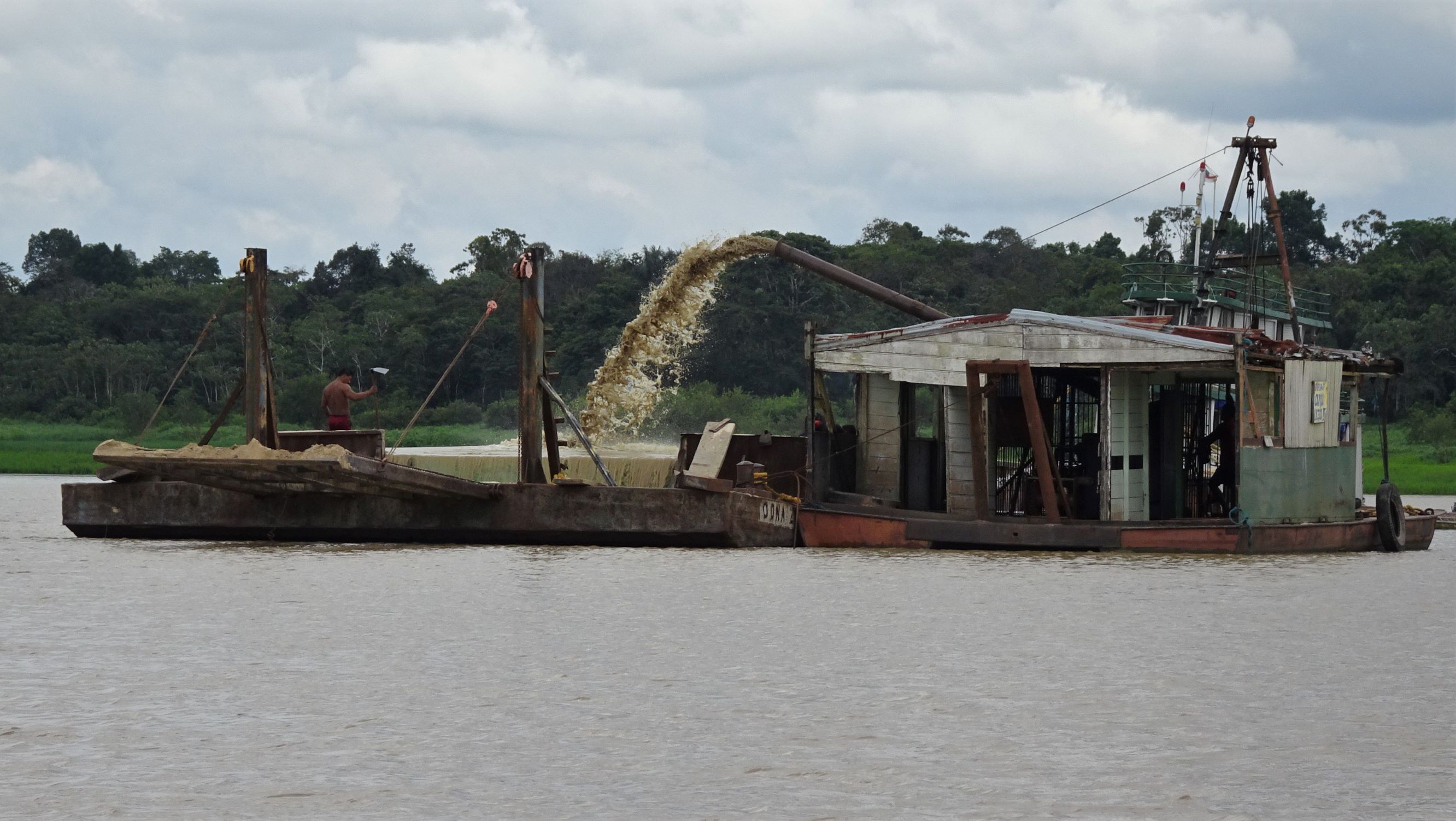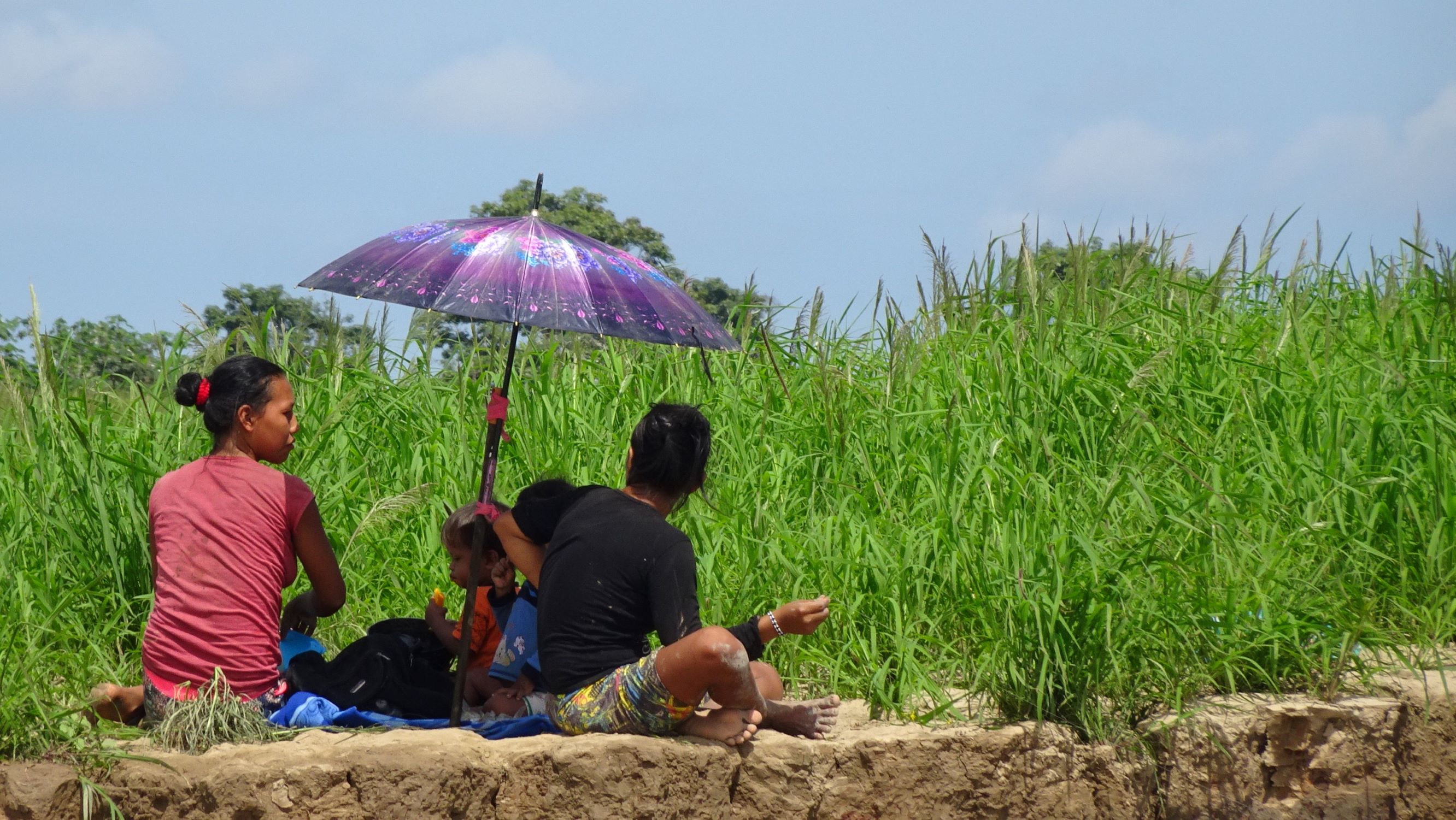 Au petit matin, Capitan Edgar nous embarque sur son frêle esquif. Une fois dépassées les cases et stations-services flottantes de l’Amazone, quelques dauphins gris et d’étonnants dauphins roses émergent furtivement des flots marron. Puis nous longeons de vastes grèves sableuses à la confluence avec le Rio Yavari sur lequel nous nous engageons. A bâbord, quelques bourgades brésiliennes, Islandia et Benjamin Constant. A tribord, des scieries péruviennes puis la jungle inondable où nous passerons les trois prochains jours. Voguant autour de nous, dragues, barges, pêcheurs au filet, une « écurie » flottante et d’élégantes ombrelles.