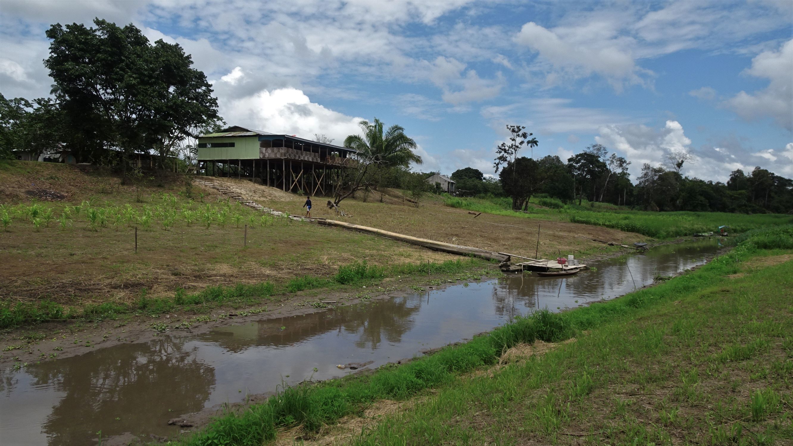 A mesure que nous progressons, l’ouverture de la canopée et l’embroussaillement consécutif du sous-bois témoignent de la proximité des Hommes. Quelques arbres coupés, un campement de pêcheurs, une clairière abandonnée puis de petites plantations de maïs, yucca et courges annoncent l’arrivée au village sur pilotis de Gamboa. Ses habitants, indigènes Ticuna et agriculteurs saisonniers, redeviendront pêcheurs à la montée des eaux.