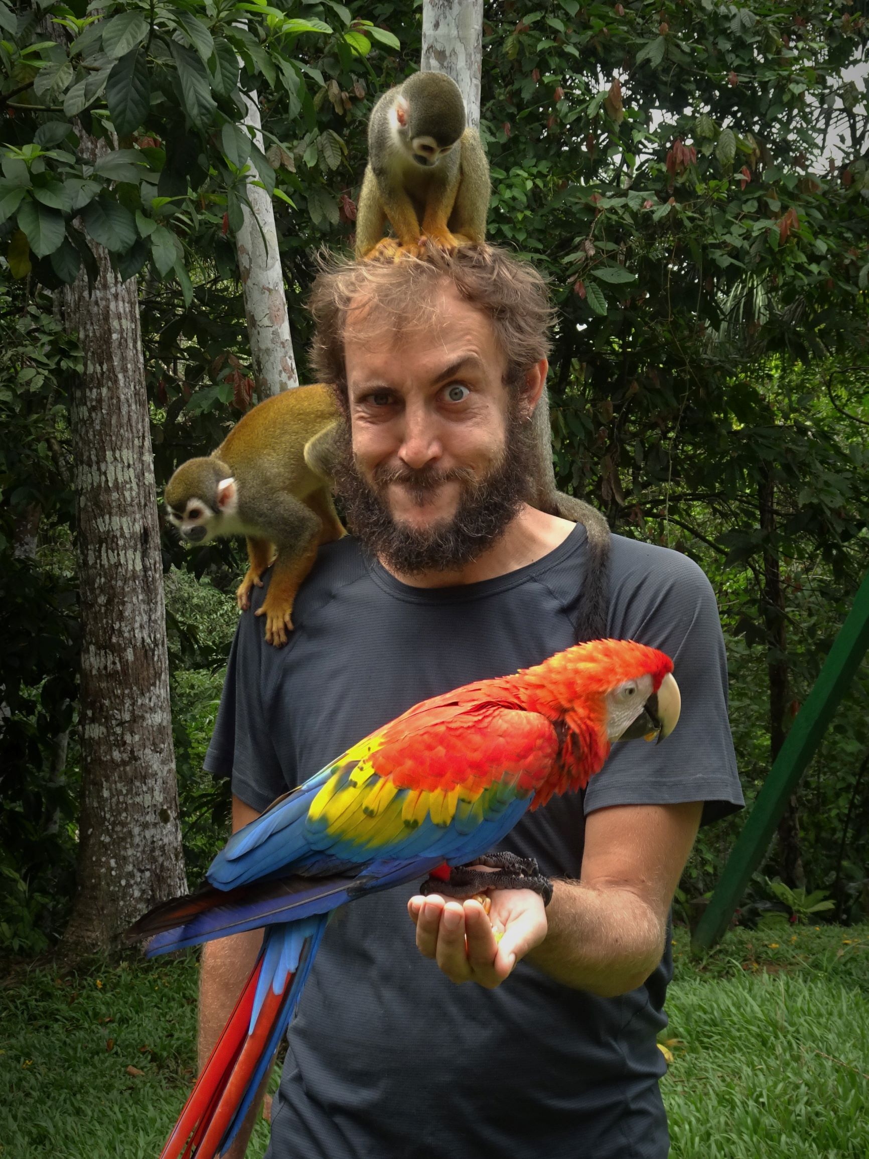 Y’a des perroquets bleus et des singes à gogo,